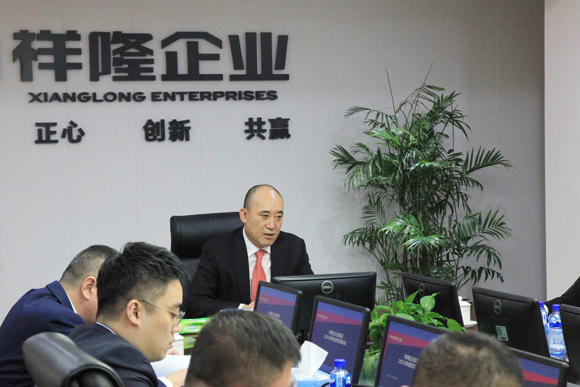 2024年1月29日上午9:00,祥隆企業(yè)集團(tuán)在祥隆國際25樓會議室召開2023年度述職復(fù)盤報告會,辛軍董事長、張吉亮總裁出席會議,祥隆企業(yè)集團(tuán)各副總裁,各產(chǎn)業(yè)集團(tuán)總裁及集團(tuán)本部各職能中心總監(jiān)做述職報告,集團(tuán)主要管理人員列席會議。