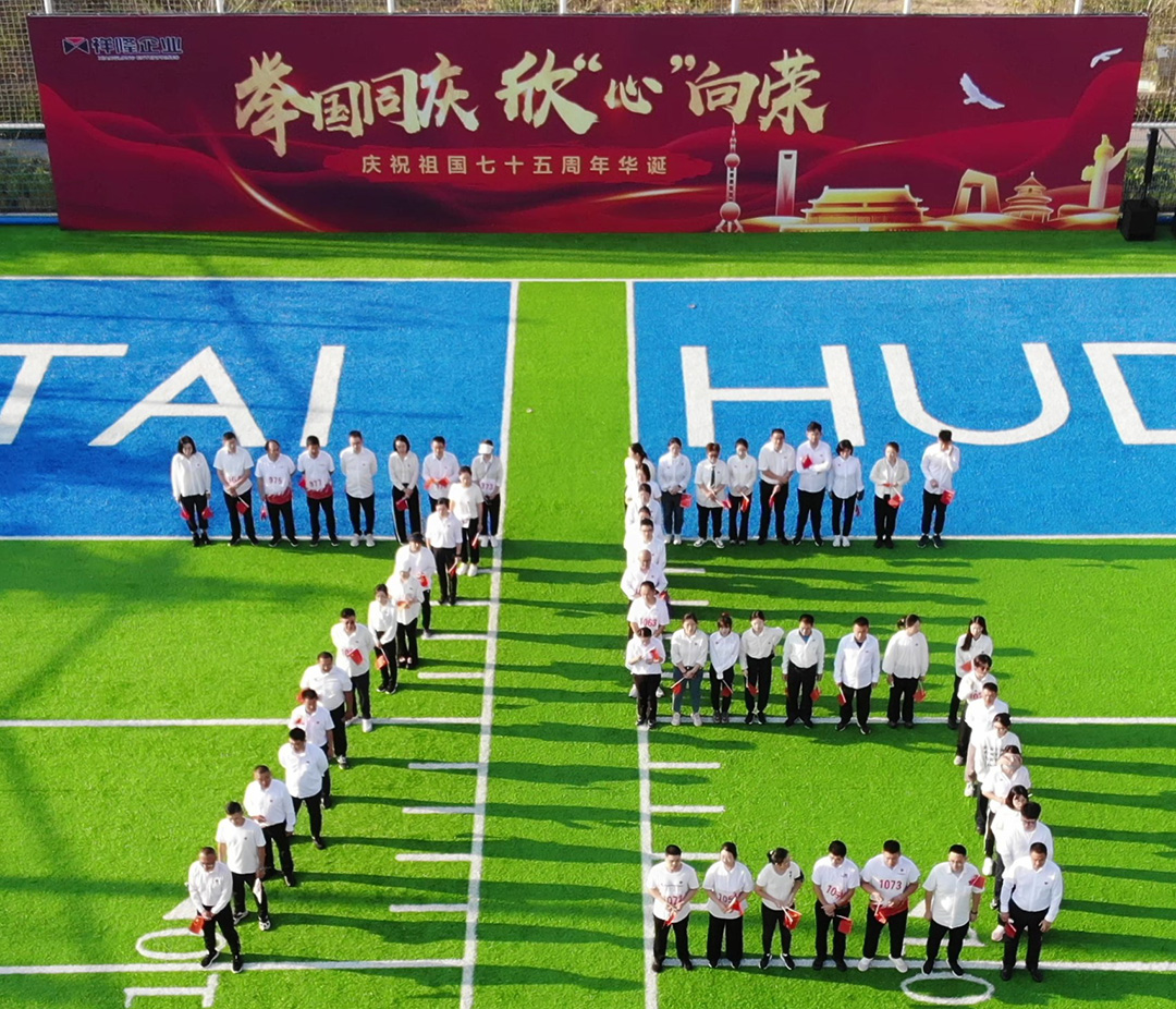 開幕式上,各位祥隆人揮舞手中國旗,齊聲高唱國歌,表達(dá)對(duì)祖國的無限熱愛與祝福。隨后,大家按照隊(duì)形擺出“75”造型,寓意與祖國同慶、共繪輝煌。
