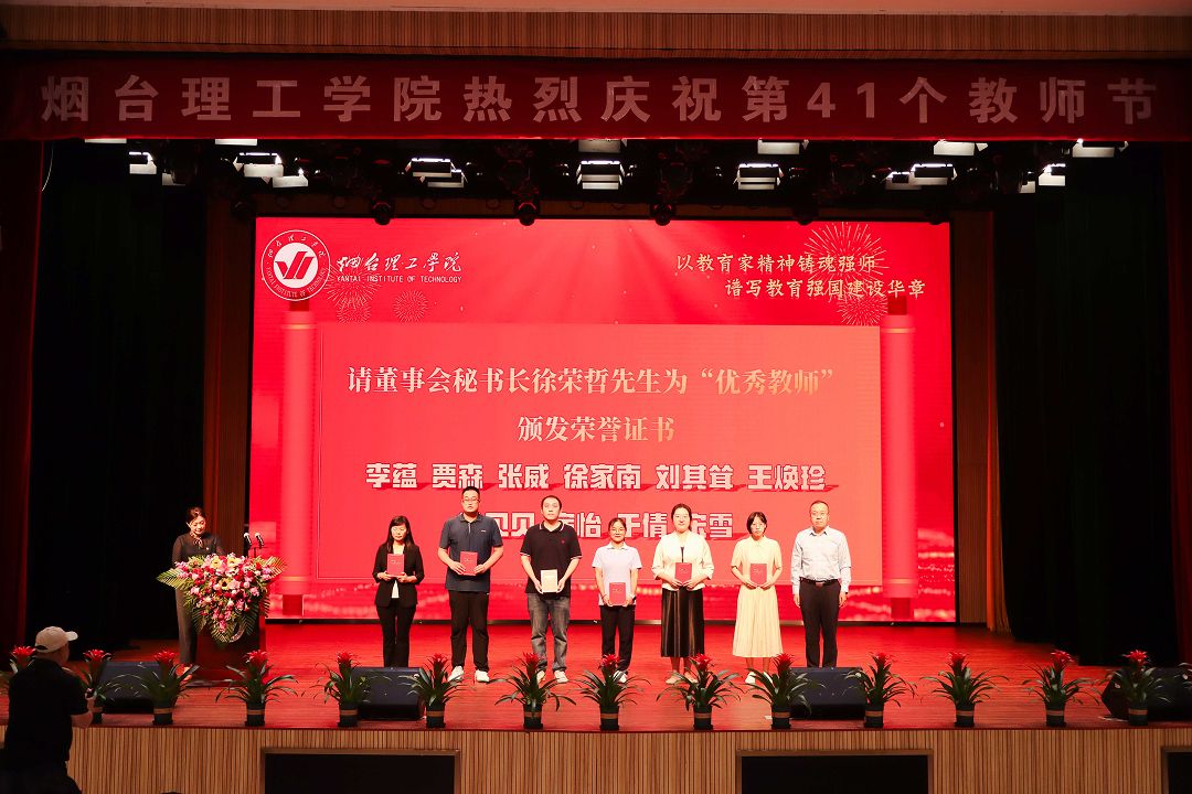 春華秋實,碩果盈枝。9月9日下午,煙臺理工學(xué)院以“以教育家精神鑄魂強師,譜寫教育強國建設(shè)華章”為主題,在綜合教一樓多功能廳隆重舉行2025年教師節(jié)慶祝暨表彰大會。祥隆企業(yè)集團董事長、煙臺理工學(xué)院董事長辛軍,祥隆企業(yè)集團副總裁、學(xué)院董事會秘書長徐榮哲,煙臺理工學(xué)院校長于光輝,黨委書記盛國軍,副校長蘇春景、張中華、夏毅,校長助理李潔、杜娟、徐雪峰等校領(lǐng)導(dǎo)出席大會,與全校教職員工共同慶祝第41個教師節(jié)。會議由校長助理李潔主持。