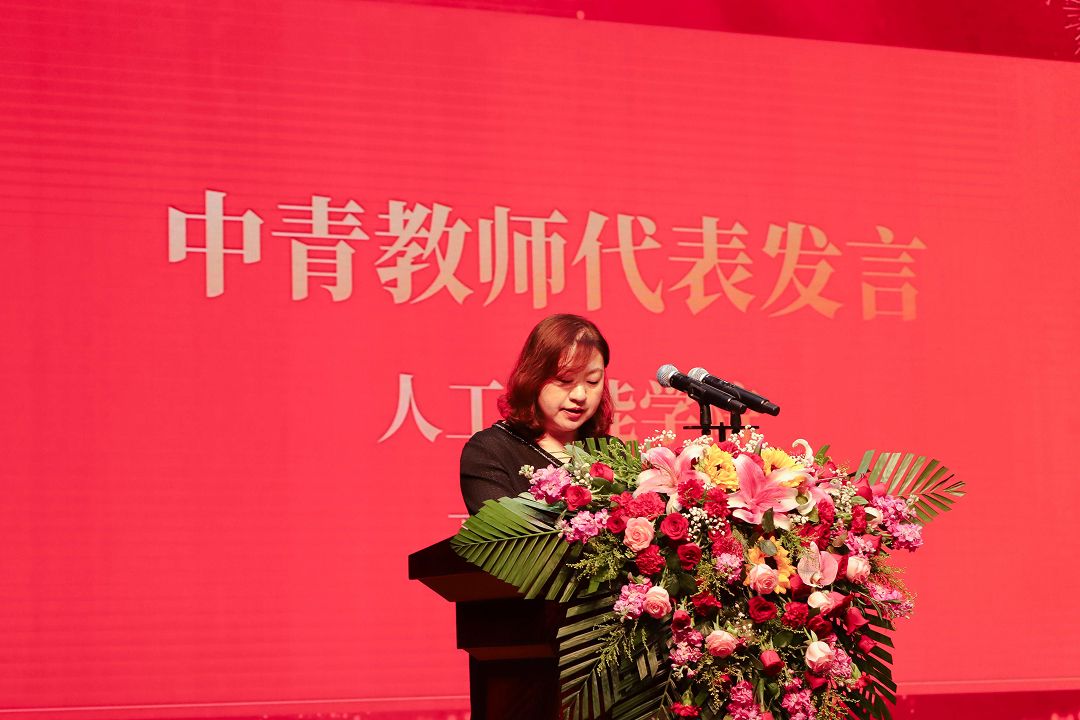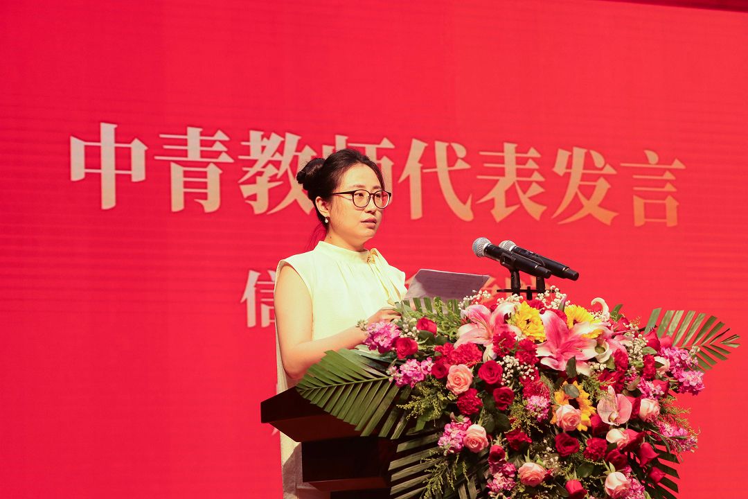 會上對第九屆教學(xué)名師、優(yōu)秀共產(chǎn)黨員、優(yōu)秀教師、優(yōu)秀黨務(wù)工作者等榮譽獲得者進行表彰并頒發(fā)榮譽證書。中青年教師代表賈志林、高謙、徐嘉憶、唐曉婷相繼上臺發(fā)言,分享了他們的育人故事與教學(xué)感悟。